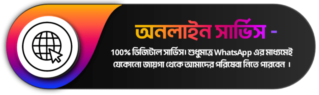 👉 বর্তমানে আমাদের সমস্ত সার্ভিস কেবলমাত্র WhatsApp -এর মাধ্যমেই ম্যানেজ হয়। সরাসরি ফোন কল করা পসিবল হয় না। WhatsApp -এই টেক্সট অথবা ভয়েস ম্যাসেজের মাধ্যমে আপনার যেকোনো কথা আপনি জানাতে পারবেন। আমরা টেক্সট অথবা ভয়েস ম্যাসেজের মাধ্যমেই আপনার সমস্ত প্রশ্নের উত্তর দেব এবং সমস্ত কাজের প্রসেস করবো।
